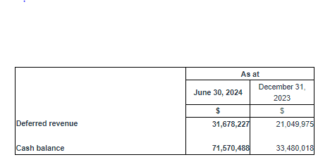 Cash on hand at June 30, 2024 was $71,570,488 compared to $33,480,018 as at December 31, 2023.