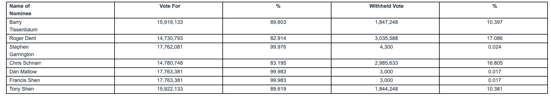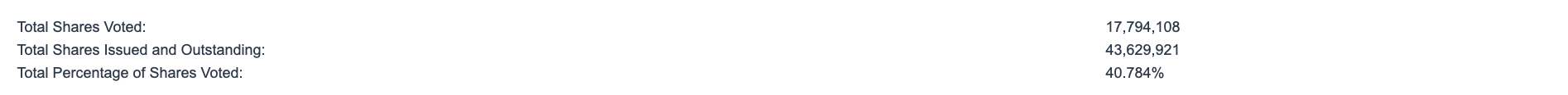 The Company is reporting the voting results of its Meeting held virtually on June 28, 2023. The summary of the results are as follows: